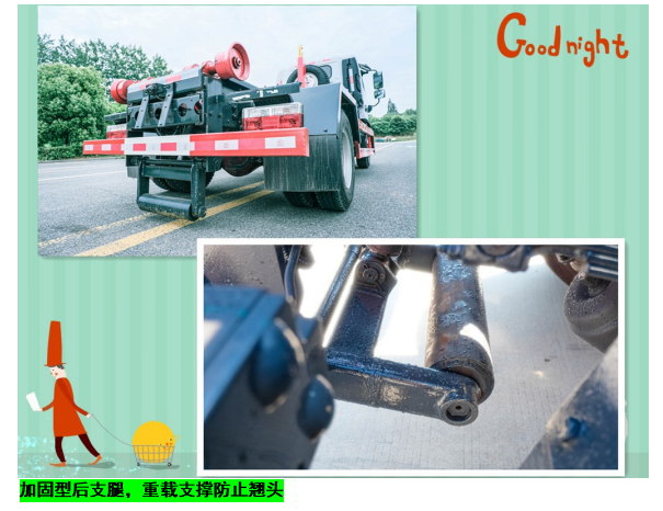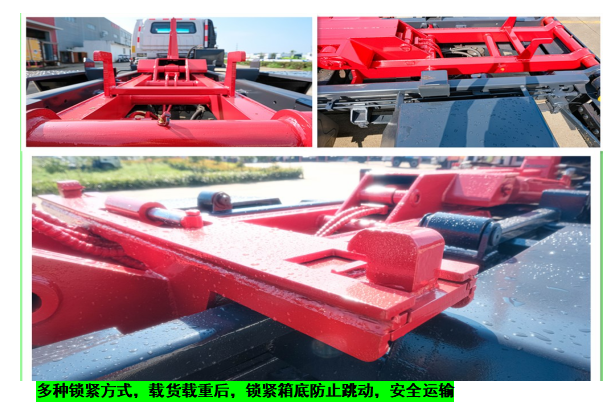 ◇上裝配置:強(qiáng)度合金鋼一體式主勾臂,加強(qiáng)型副梁,鑄鋼尾托輪,手自一體室內(nèi)外液壓操控,上裝提升能力3000KG,?液壓完成上箱+下箱+鎖緊+自卸等作業(yè),實(shí)現(xiàn)一車配多箱的循環(huán)轉(zhuǎn)運(yùn)。可采用加強(qiáng)型上裝,油缸加粗,加裝液壓支腿,搭配建筑垃圾箱使用,提升能力8000Kg。