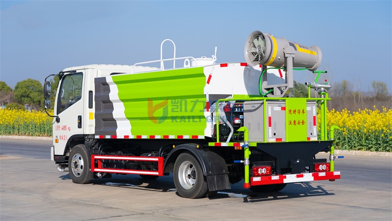 方形罐體,自吸?灑式?水泵,灑?車水?功能,前沖,后灑,側(cè)噴,后?臺平?高壓水炮。