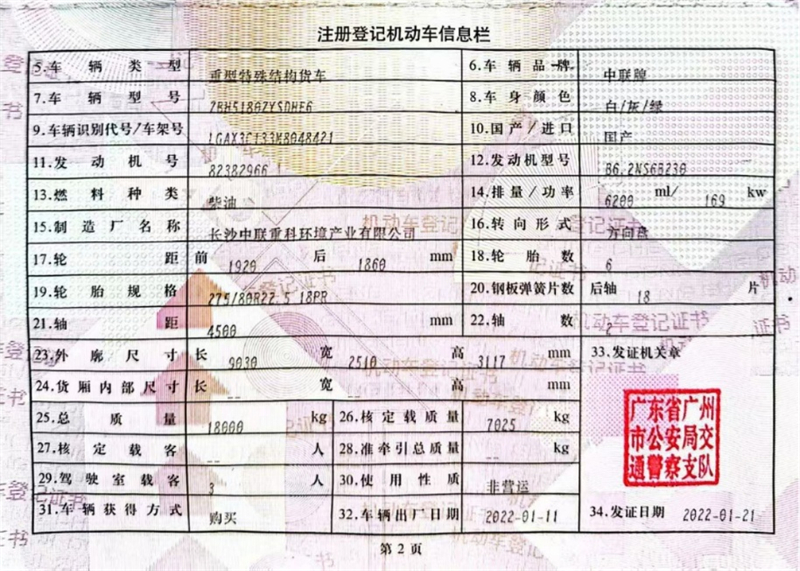 2022年1月,東風(fēng)天錦中聯(lián)重科壓縮垃圾車,國六,15方,康機(jī)230馬力(6缸機(jī)),